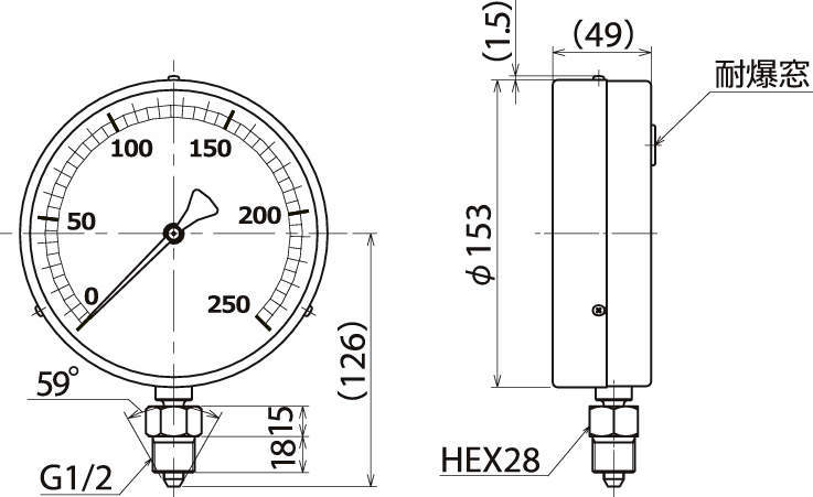 *高使用圧力 200MPa *高目盛 250MPa ねじ口径 G1/2自在ねじ
