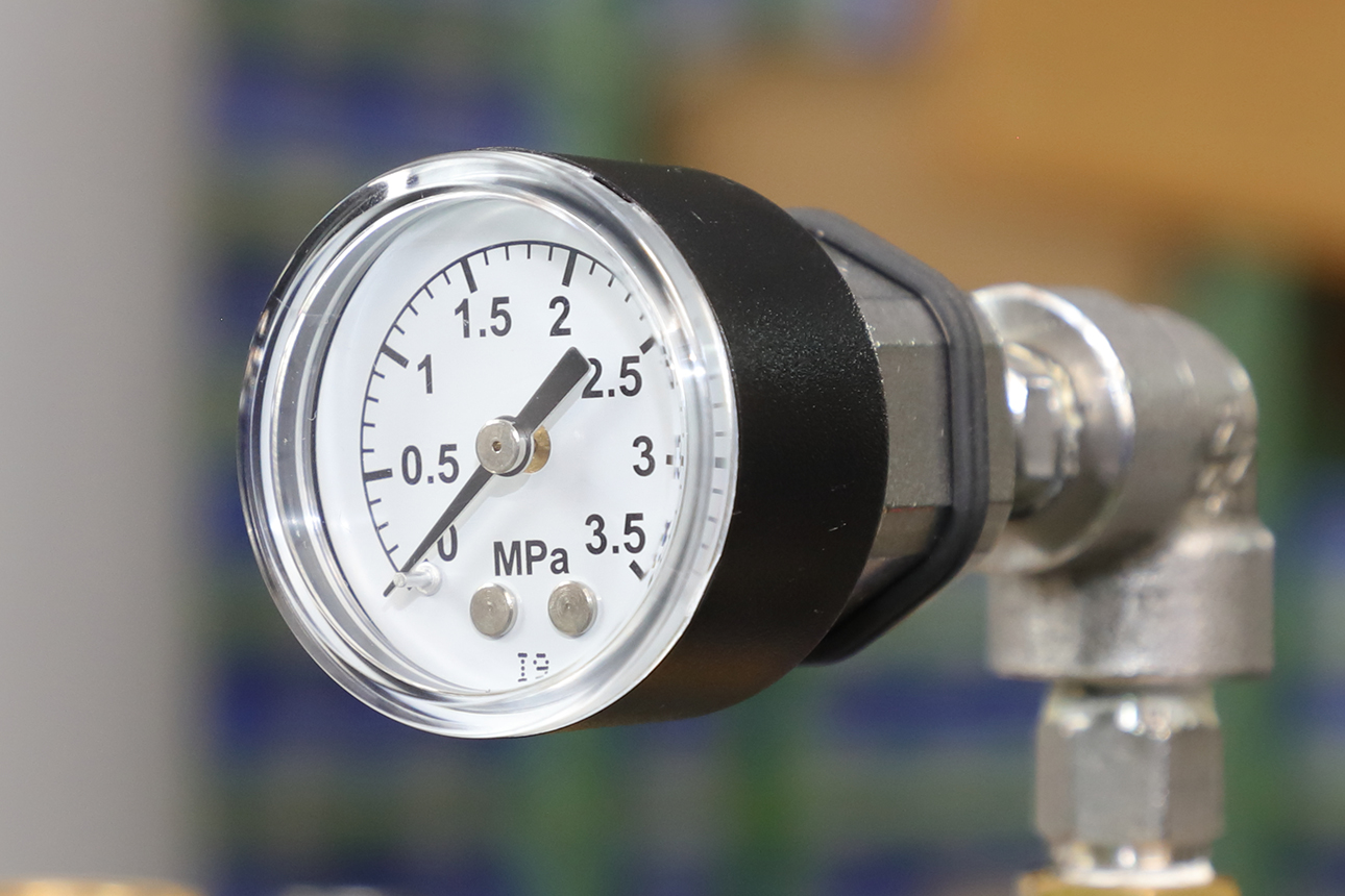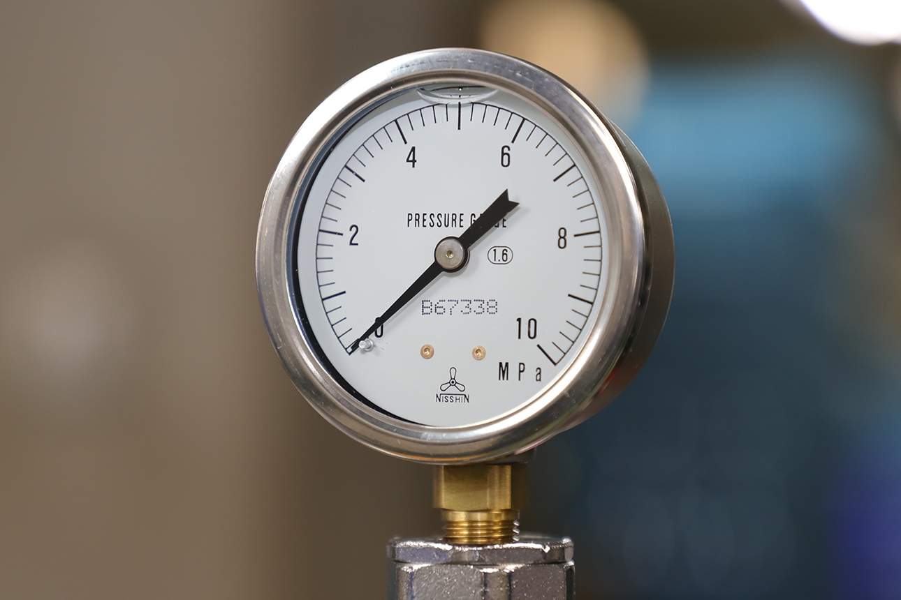 振動、脈動圧に耐えグリセリンの粘性により優れた耐久性を持った圧力計です