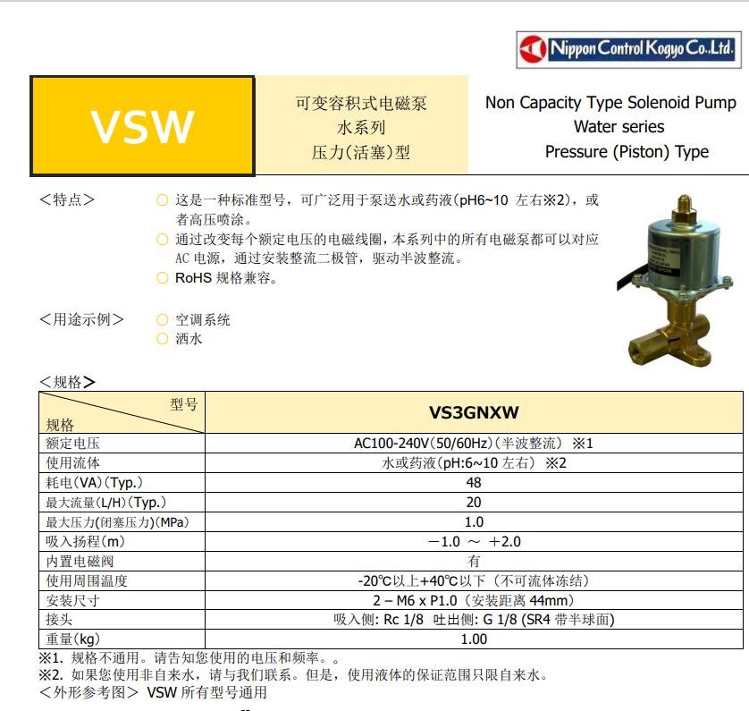 日本控制工业Nippon水泵VS4GNXW(AC200V)